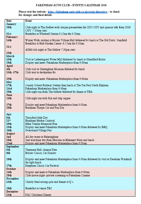Please note that Fakenham Auto Club is a volunteer-run organization. Information shared on the website is for general interest and community engagement purposes only and should not be considered professional advice.